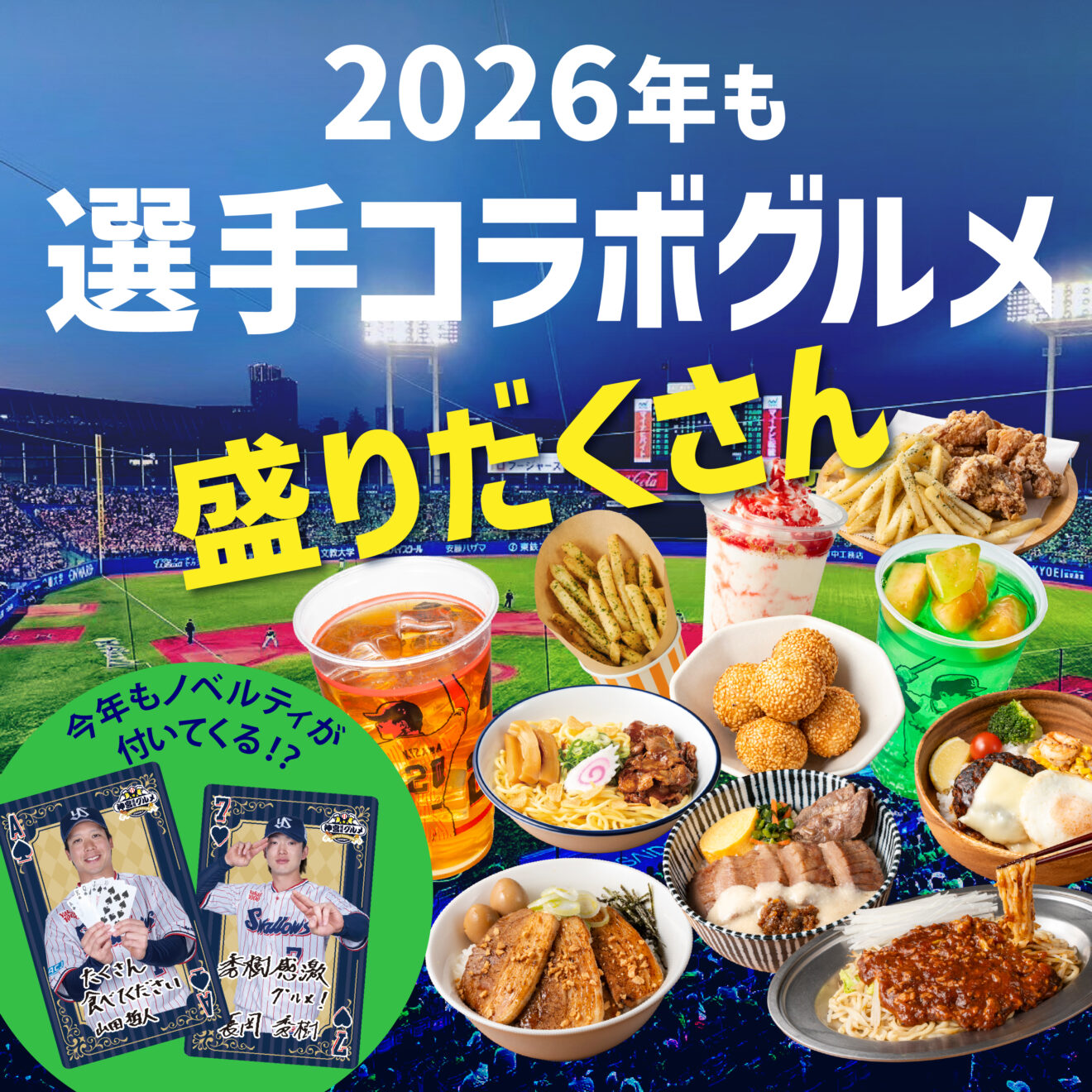 12球場最大規模のスワローズ選手コラボグルメを、今年もぜひ神宮球場でお楽しみください!